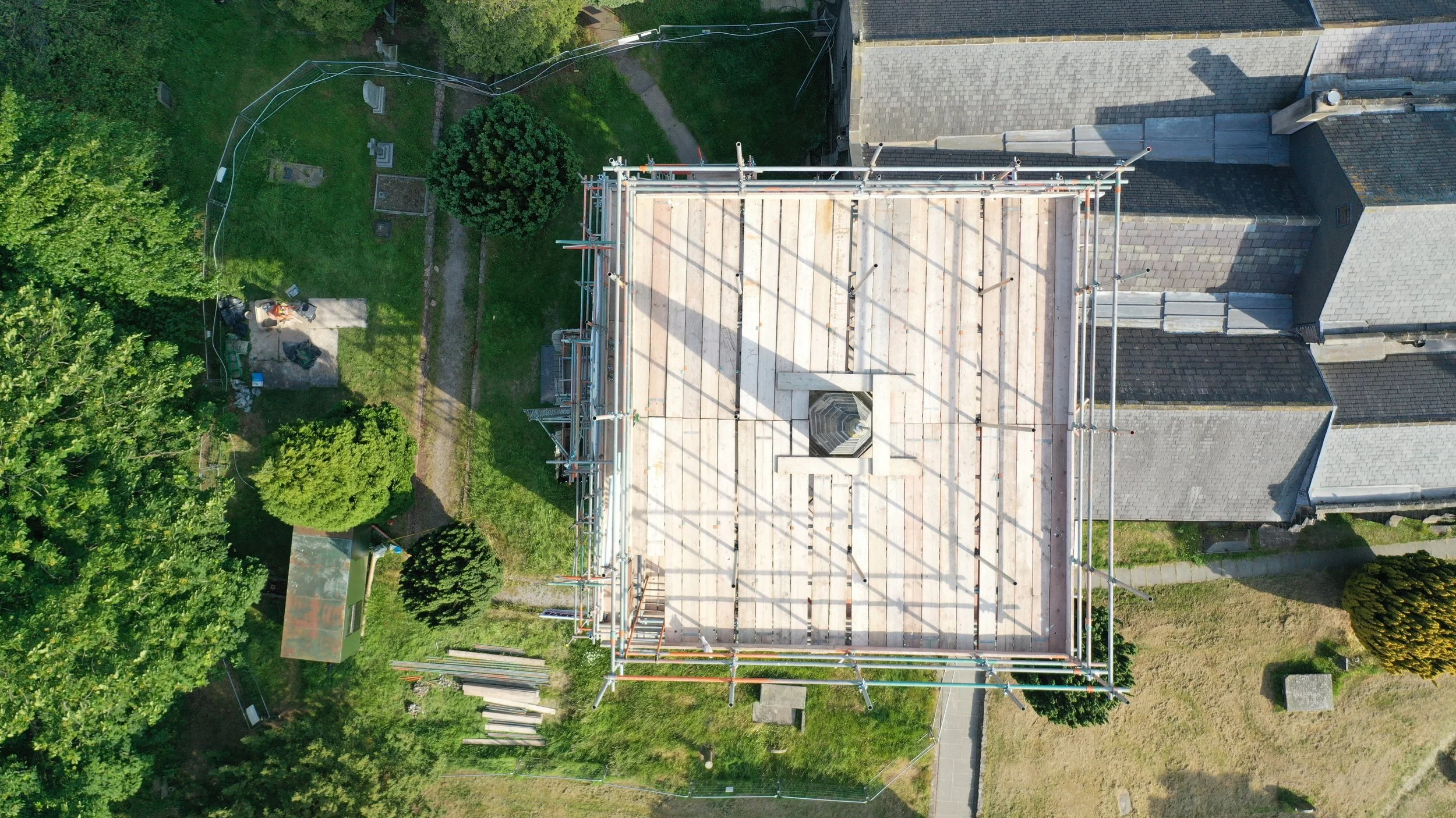 The tower project demanded the design and construction of a complex cantilever scaffold to allow safe access to the church’s tall spire. Our experience in structural scaffolding design and temporary works ensured stable and efficient platforms for detailed masonry repairs at height, with full compliance to health and safety standards.